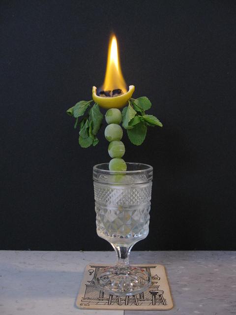 新年会のパーティープランはありますか?今日はちょっと人目を引くカクテルのレシピです。といってもカクテルそのもののレシピではなく、カクテルを出すときの飾りの作り方です。マジシャンのように、炎を上げてテーブルに運んでいけば、パーティーの目玉になること請け合いです。大人のパーティーにぜひお試しください。(一人分)