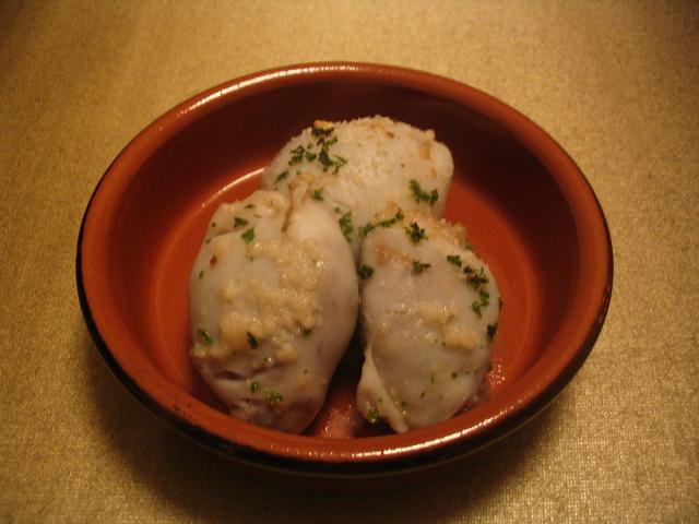 「世界の家庭料理からもてなし料理のレシピまで集めよう」では、和食は除いていますが(アメリカ人の主人に日本食の微妙な違いはわかってもらえないので、家庭では作らないのですが)、今日紹介する、イカの詰め物は、イタリア料理の本に載っていたものの、ご飯といっしょに食べるようになっていて、「おせち料理」に飽きたときに作ってみても、日本の食卓の他のおかずと合うのではないかなと思います。レシピの前置きには、この栗のスタッフィングは、ベネチアのイカのサイズがちょうどいいと書いてありましたが、アメリカの食料品店では、かなり小ぶりのものしか手に入らなかったので、少しずつ詰めるのに時間がかかりました。でもそれで更に、日本のお惣菜風になったような気もします。オリジナルレシピでは、栗を水につけて長時間置いてからローストするようになっていましたが、そこまで時間がないので、「むき栗」を買ってきて、刻んで使いました。栗のシーズンに試してみてください。(4人分)