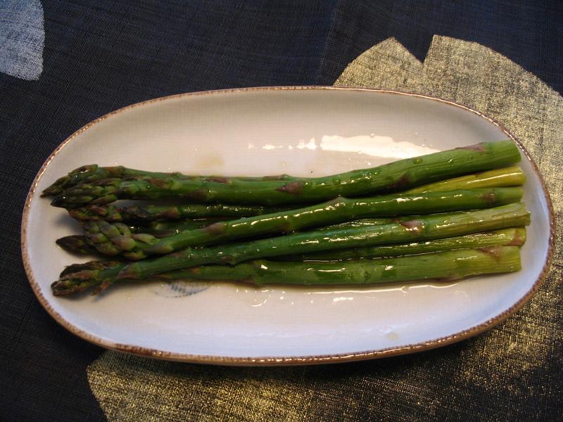 *アスパラガスが焼けたら、用意したビネグレットをかけて出す。