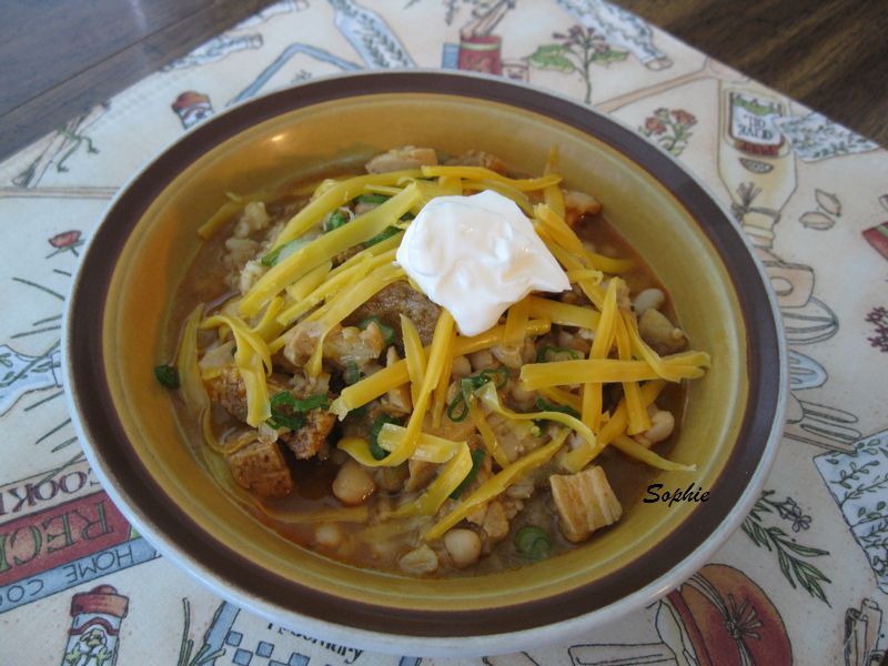 チキンのローストをした後など、調理した鶏肉がたくさん残った時に、チキンチリのレシピがあると便利です。もちろん最初から、赤肉は避けてメキシカン・チリを作りたいときにも使ってください。豆類を入れるのは、アメリカンスタイルだと聞きましたが、今日のレシピには、パール・バーレー(はと麦)も入っています。このためにチリが残って翌日に食べるときなどは、麦が残りの汁をよく吸うので、もう少しチキンスープを足して温めると食べやすくなります。下記の分量が多すぎるときは半量でお試しください。(8~10人分)