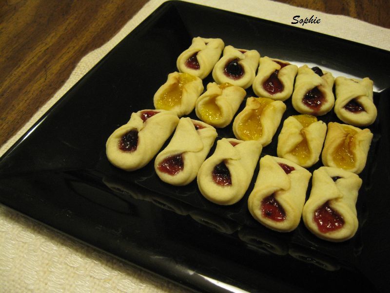 コラーチ(人によっては、コラーシェ、、コラーチェ、コラーキと発音する場合もあるようです。)という名前の食べ物は聞いたことがありますか? チェコの伝統的な食べ物で、イーストを使って作るパン状のものもあれば、今日紹介するレシピのように、たった4つの材料で簡単に作れるクッキー状のものもあります。私は図書館から料理本を借り、気に入ったレシピがあるとコピーして置いておいて、時期が来たら試していくので、元レシピがどこから来たのか覚えていませんが、cooks.comに行くと、いろんな種類の”Kolache”のレシピが載っています。アメリカのテキサス州にはチェコからの移民が多いらしく、毎年”Kolache Festival"が行われているそうです。普通クッキーの生地には砂糖が入りますが、このレシピには含まれず、甘味はジャムだけとなっているので、ダイエット中の方にも食べていただけますね。ジャムの種類をいろいろ変えて詰めると、仕上がりがカラフルになります。