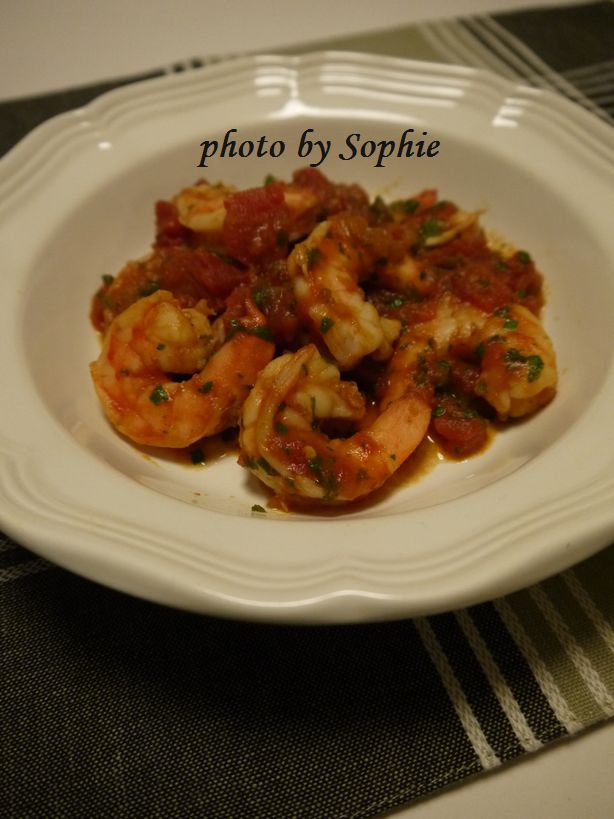 海老の皮も使って煮込むトマトソースなので、ちょっと手が込んでいます。この一品でアントレにしてもいいし、好みのパスタにバターを絡めて一緒に食べてもいいと思います。後はサラダとパンがあるといいですね。CooksIllustratedに載っていたレシピです。(4人分)