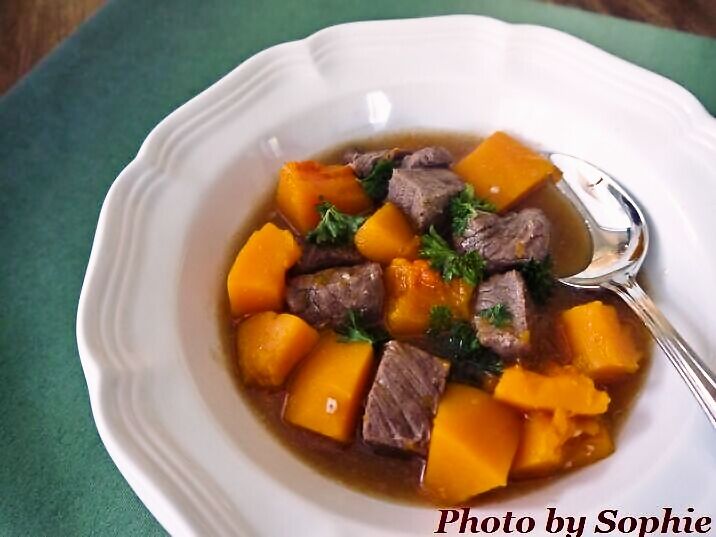 <ビーフとバターナット・スクウォッシュのスープ>