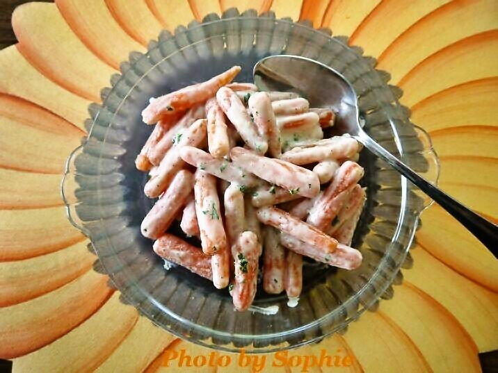 人参をクリームソースに絡めるレシピです。ハーフ&ハーフが濃いなと思われたら、全脂乳を使ってください。私は袋入りのベビーキャロットを使ったので、皮をむいて切る手間も省きました。サイドディッシュを追加したいときに、簡単にできる、"bon appetit" に載っていたレシピです。 大人数用の分量なので、小家族用に3分の1量くらいで作りました。(10人分)