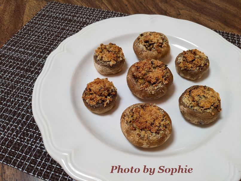 マッシュルームの詰め物を久しぶりに作りました。ホットペッパーやハリッサペーストも使ってスパイシーに仕上がっています。メインディッシュの副菜にしてもいいし、前菜にもなります。サンクスギビング時期のオードブルに加えてもいいですね。ニューヨークタイムズに載っていたレシピです。(2〜4人分)