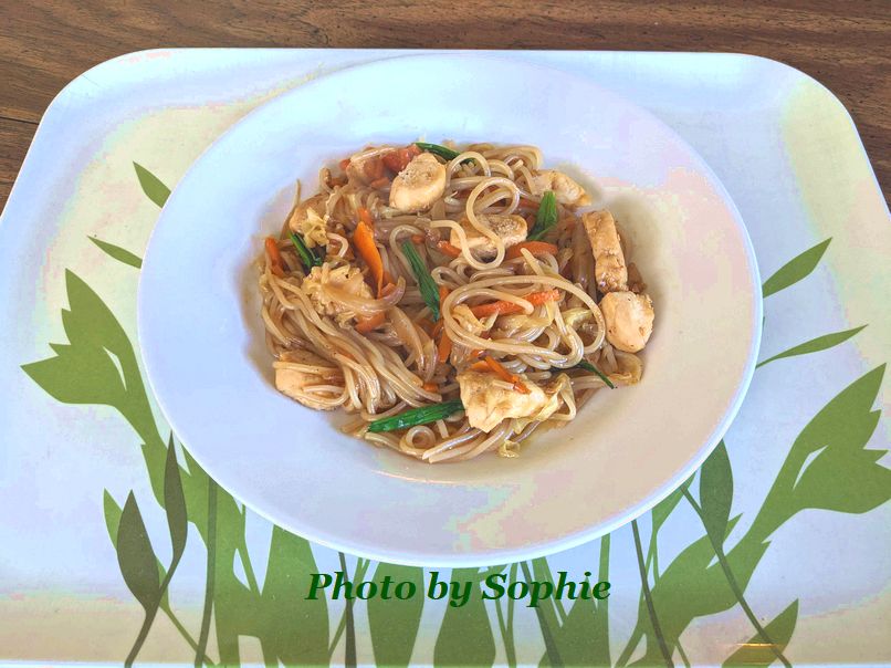 パンシット"Pancit" というフィリピン料理のレシピを紹介します。元々は中国由来の料理で、好みの種類の麺を野菜や肉と一緒に炒めて作ります。地方によっても、また入手する食材によっても、いろんな作り方がある料理です。今回のレシピは、ニューヨークタイムズに載っていたもので、麺はバーミセリを使っています。(6人分)
