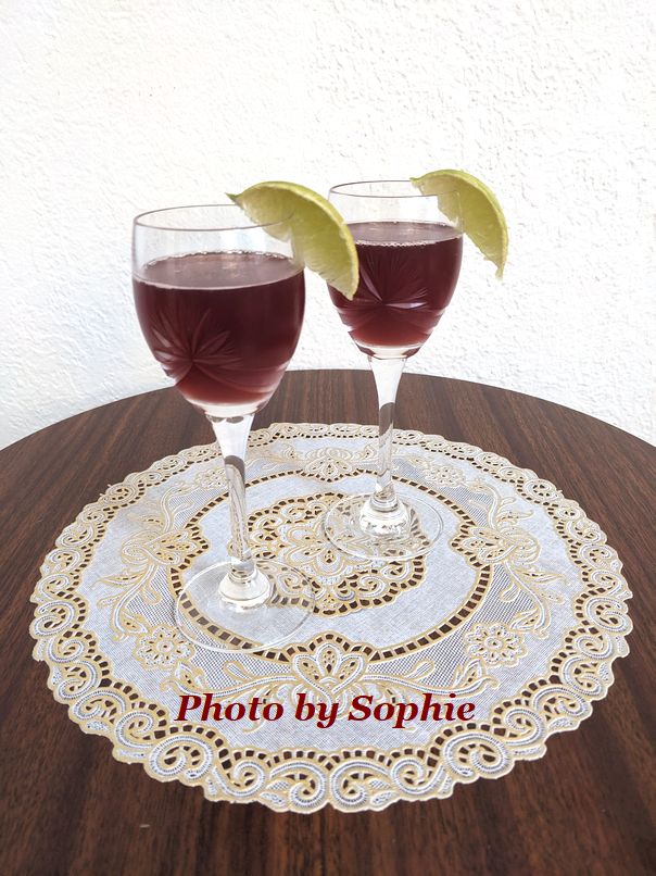 ビショップ・カクテルのレシピです。バージョンはいろいろあるようですね。オレンジジュースとレモンジュースを使うものもありますが、このレシピでは、ライムジュースに赤ワインとホワイトラムを混ぜます。前者の場合は、ホットタイプもあるので、季節に合わせて作り変えるといいですね。今回は、"Cuisine at Home" に載っていたレシピを使いました。(1人分)