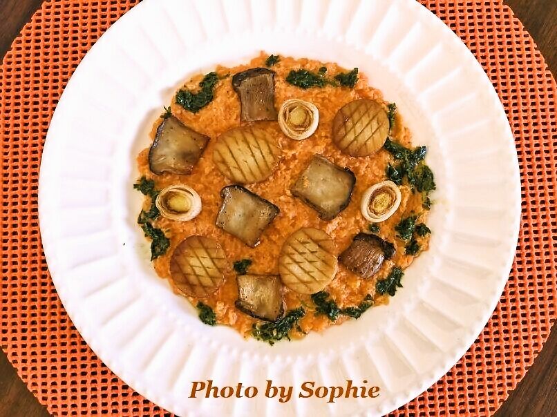 <エリンギの貝柱風ソテー・人参ピューレ添え>