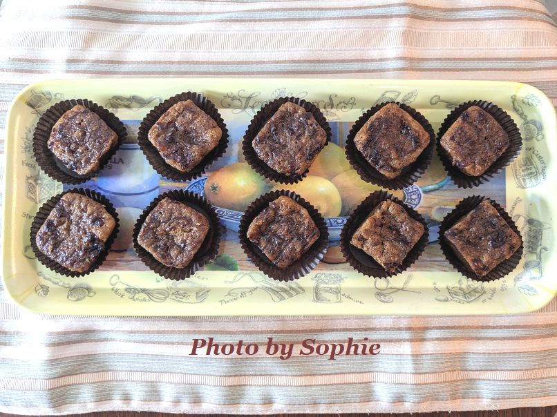 ヌテラという、チョコレートココア・スプレッドはアメリカで大人気です。トーストに塗ったり、野菜のディップに使ったりします。今回は、焦がしバターを使って作るバナナバーに、マーブル状に練りこんで一口サイズで焼きます。他の種類のチョコレートジャムでもOK。とてもしっとりした仕上がりです。このレシピは、Siri Oaly さんの"Seriously Delicious" という本に載っていました。(20個分)