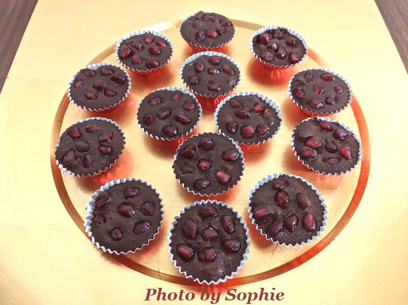 ザクロをたっぷり仕込んだ、ダークチョコレートカップのレシピです。サラダ用に買ってきた石榴を丸一個使い切れずに残っていて、どうしようかなと思って探して見たら、このレシピが見つかりました。チョコレートを溶かして、少しの油と塩を混ぜた中に、ざくろを入れて冷蔵庫で冷やし固めるだけの簡単レシピです。クリスマスのおやつの1つに、ザクロの赤色が映えます。(20個分)
