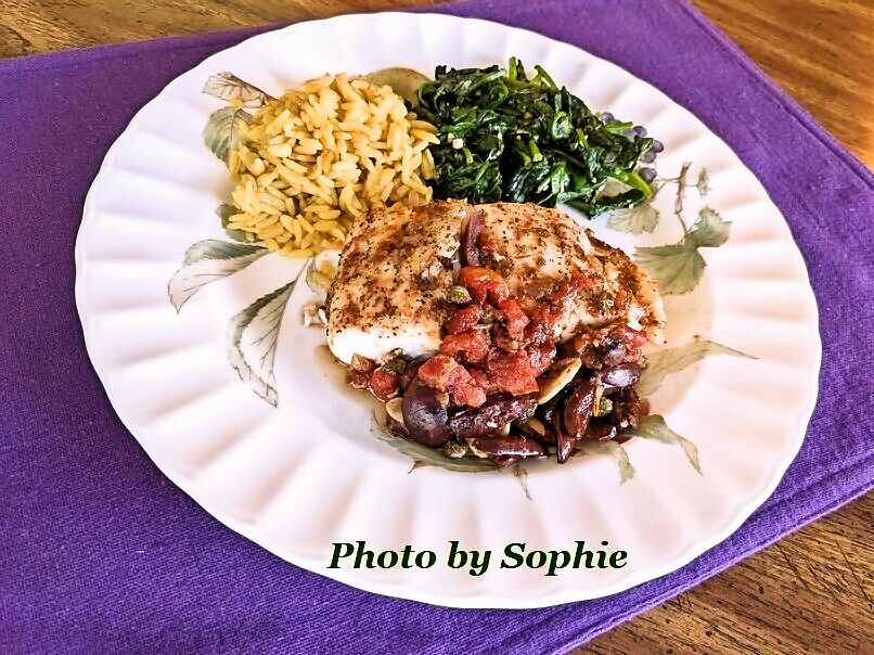 *ハリバットが焼けたら、チャードの上に置き、シトラスサルサを載せて出す。