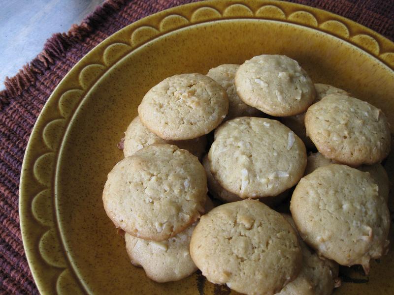 ココナッツを使ったクッキーのレシピでは、以前に「ココナッツ・オレンジ・クッキー」や、「ココナッツ・オーツ・クッキー」のレシピを紹介しましたが、今日はバークッキーのレシピです。外側はクリスピーですが、中はソフトで噛みごたえがあるクッキーです。切り方次第で形も変えられ、出来上がりの個数も変えられるところが、バークッキーのいいところですね。(約2ダース分)