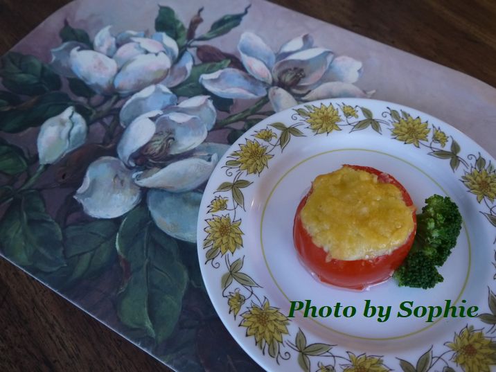 トマトにマッシュポテトの詰め物をしてオーブンで焼くレシピです。トマトが焼いている途中で型崩れしないように、しっかりした硬めのものを選んでくださいね。レシピは大人数用なので、小家族には、半分とか3分の1くらいでも十分だと思います。(12個分)