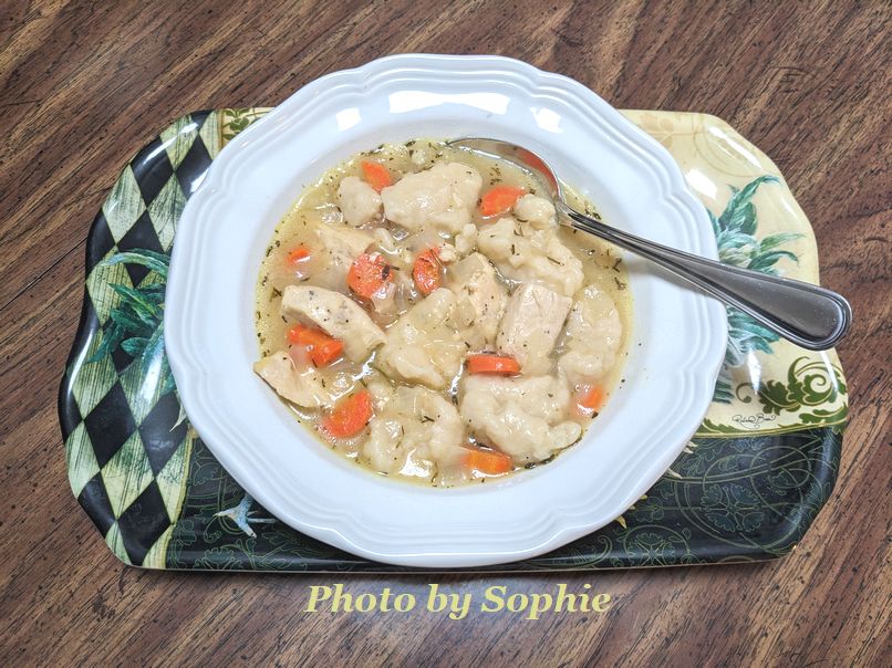 チキンシチューにダンプリングを入れたものを作りました。どこか、すいとん風で、結構お腹を満たしてくれます。以前に、ほうれん草とアーティチョーク入りのチキンシチューを紹介したことがあります。そちらはクリームチーズの入った白いスープでしたが、今回は澄んだスープになります。よろしかったら比べてみてください。(4人分)
