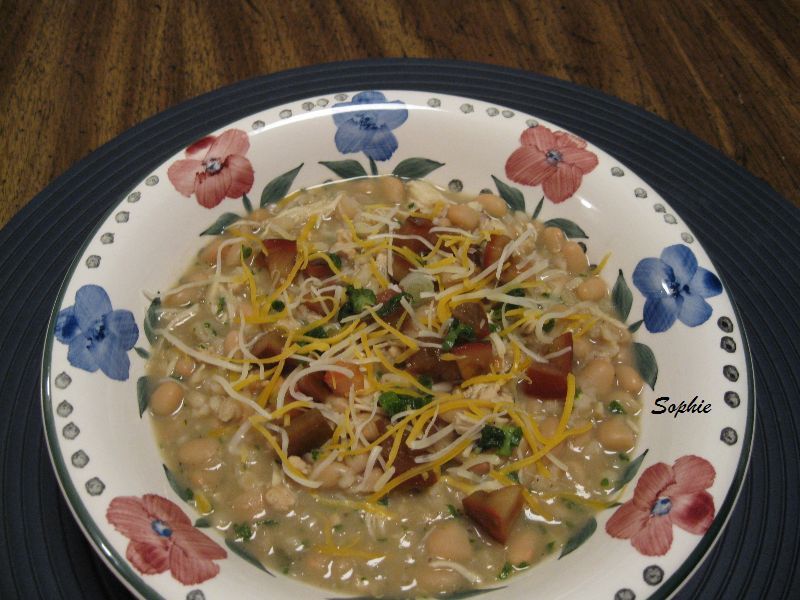 チリ(チリコンカン)はスーパーボウルには欠かせません。まあ他のスープ類でもピザでもいいのですが、とにかくCMの時に簡単に台所からもってこられるもの、といった感覚でしょうか。私はフットボールファンではないのですが、主人はじっくり観るので、この日はテーブルに座って食事はできません。もっとも、息子が成長して出ていってからは、もっぱらテレビの部屋での夕食が多いのですが。ともかく、今日のチリレシピは、鶏肉を使った「ホワイトチリ」になっています。以前にも「チキン・チリ」のレシピを載せているので、今回にものと比べてみてください。煮豆は白いものだったら何でもかまいません。(6〜8人分)