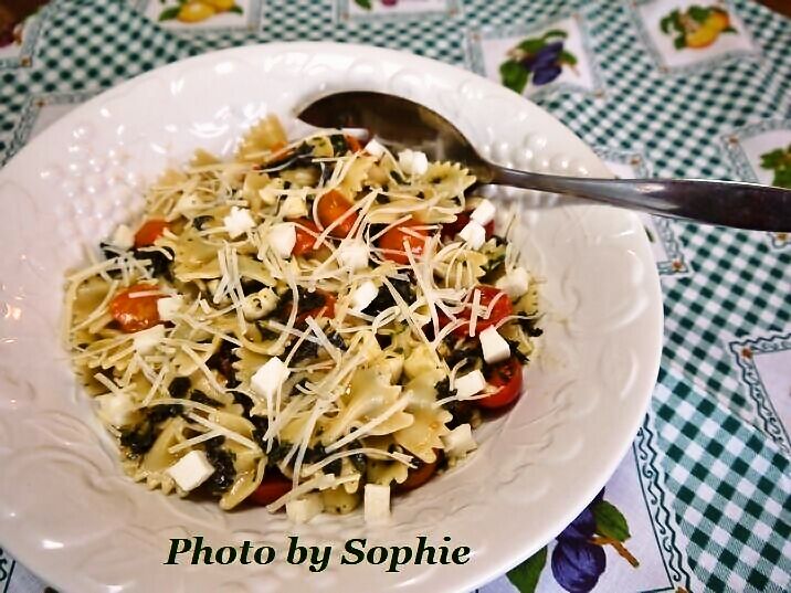 *まだ温かいうちに、パスタをドレッシングのボウルに移して混ぜ、置いておく。