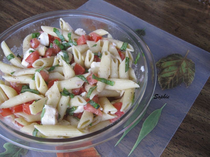 「カプレーゼ」と言えば、イタリアの代表的サラダで、生のモッツァレラチーズにトマトとバジルをオリーブオイルと塩胡椒で和えた物ですが、今日のレシピは、ペンネを主体にした、パスタ・カプレーズです。生のモッツァレラチーズが手に入るときに作ってみてください。隠し味も利いています。(4〜6人分)