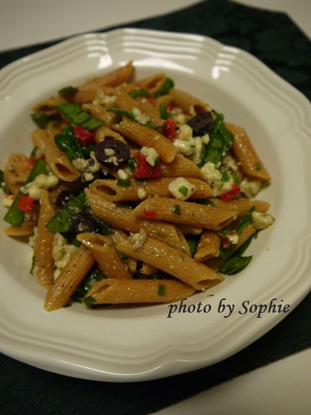 ペンネを使ったパスタサラダのレシピです。他のチューブパスタやショートパスタでも代用できます。元レシピには、シェーブル(山羊のチーズ)使用とあったのですが、私はちょっと苦手なので、家に残っていたスモーキーなブルーチーズを入れることにしました。手で砕きやすいお好きなチーズに振り替えてください。(6〜8人分)