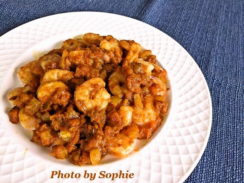 *ソースの鍋に少し水を足して、注げるような濃さにしたら、再び火を通して、海老の上からかけて混ぜる。