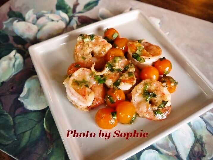 海老の炒め物レシピです。できるだけ大きい海老が良いです。スパイスミックスは、例えば、ガラムマサラやファイブスパイス、カレーパウダーやチリパウダーなど、お好みで組み合わせてください。私は赤いトマトしかなかったのですが、海老が赤みがかっているので、できれば黄色のミニトマトのほうが映えます。ニューヨークタイムズに載っていたレシピです。(2〜3人分)