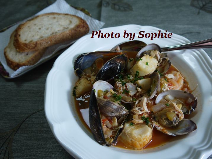 チョピーノ(魚介類のシチュー)のレシピは以前にも紹介していますが、今回は、サンフアンシスコ・パレスホテルのシェフであるJesse Llapitanさんのレシピで作ってみました。フィッシャーマンズワーフがあるシスコは、やはり魚介料理の宝庫です。メモには、必ず"Dungeness crab"を使うこと、とあったので、できるだけ良質のカニを手に入れて作ってくださいね。ハリバットがなければ、他のしっかりした白身の魚を代用できます。(8人分)